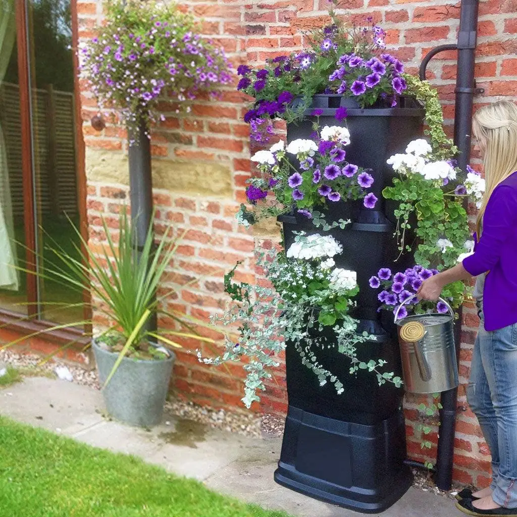 200L Rainwater Terrace Water Butt Planter – 3 Tier The Rainwater Terrace® is a new multi-award winning concept in rainwater collection promoting the reuse of valuable rainwater and ‘grow your own’ sustainability. Its unique patented modular design incorporates an integrated plant growing system enabling plants, herbs and more to grow alongside the stored rainwater.
