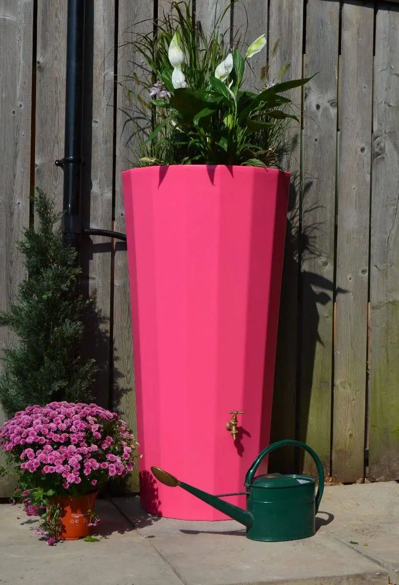 Brighten up your outdoor space with this 255L Metropolitan Water Butt with Planter in Pink.