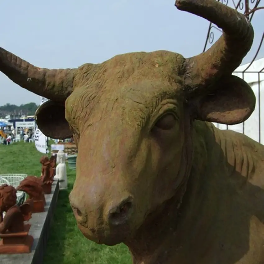This is truly an amazing piece of art made out of the finest iron and hand finished for extreme detail. This giant bull statue is naturally rusted for effect. Please know that these product is kept outside so the weathering process would have started already. Each bull we have will be different depending on how long its been out. Whilst a weathered look is generally preferred, a uniform finish can be achieved by priming and spraying or painting as required.